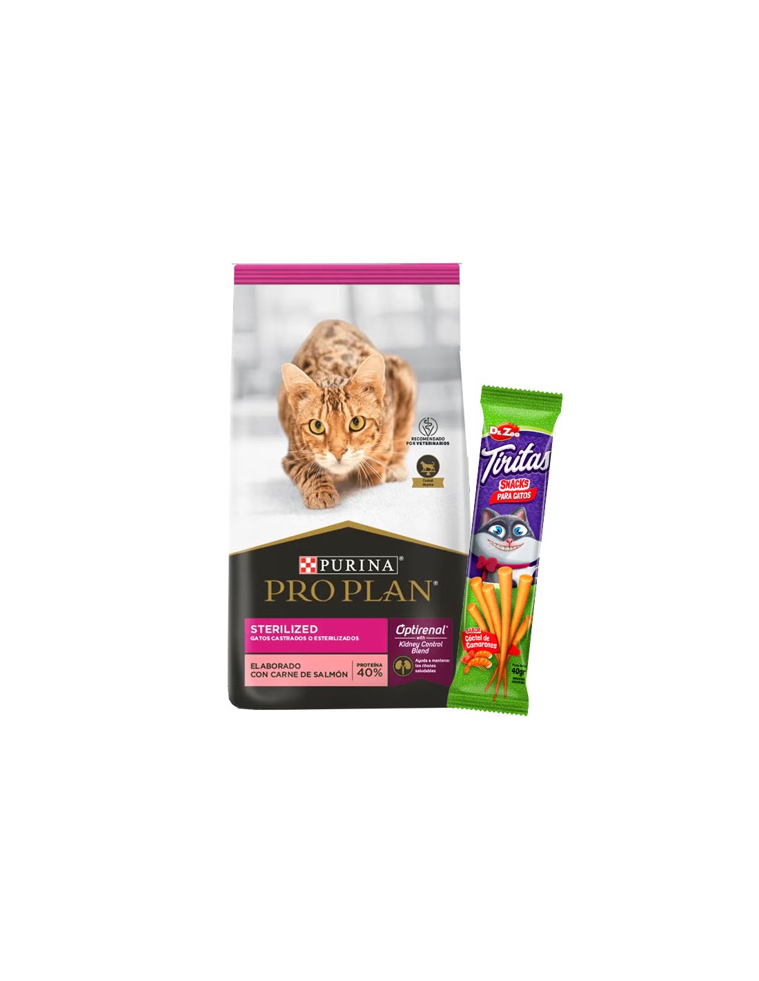 Harina de subproductos de pollo, arroz, carne de salmón, harina de soja, gluten de maíz, fibra de soja, gluten de trigo, harina de pescado y/o harina de alga (Schizochytrium sp.), aceite de pollo y/o grasa vacuna preservados con tocoferoles (fuente de vitamina E), hidrolizado a base de subproductos de pollo y/o cerdo, inulina, ácido fosfórico y/o bisulfato de sodio, fibra de caña de azúcar y/o celulosa, cloruro de potasio, sal, aceite de pescado, suplemento vitamínico antioxidante (A, D3, E, K3, B1, B2, B3, B5, B6, B7, B9, B12, BHT), suplementos minerales [(sulfatos: zinc, hierro, manganeso, cobre), (proteinatos: zinc, hierro, manganeso, cobre, selenio), yodato de calcio, selenito de sodio], cloruro de colina, DL-metionina, taurina, L-arginina, levadura seca (Saccharomyces cerevisiae ssp.), ácido ascórbico (fuente de vitamina C), carbonato y/o fosfato cálcico, L-lisina, beta-caroteno.