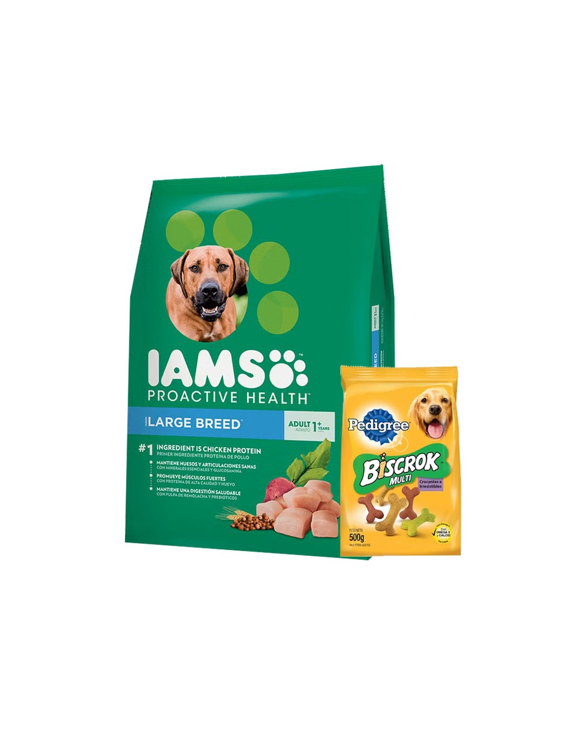 IAMS Adulto Large/Giant Breed es un alimento Premium para perros adultos de más de 18 meses. También para raza grande y gigante (de más de 25 kilos). La fórmula esta enriquecida con glucosamina, un componente natural que ayuda a mantener las articulaciones y los cartílagos sanos.