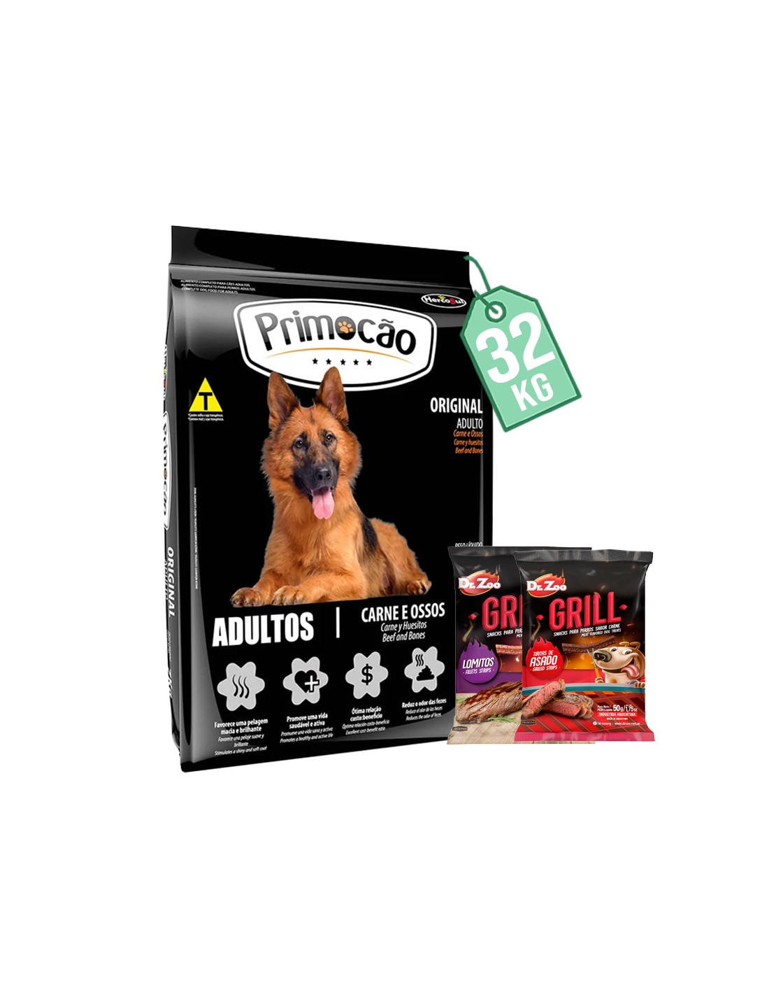 Primocao Original es un alimento estándar que cumple con los requerimientos básicos de su perro adulto, sin importar el tamaño o raza. Cuenta con varias presentaciones, todas en sabor carne y huesitos.