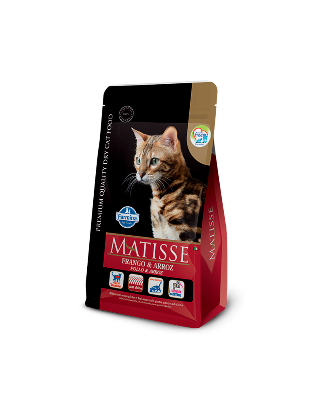Matisse Frango & Arroz es un alimento completo y balanceado para gatos adultos con nivel de actividad física normal.