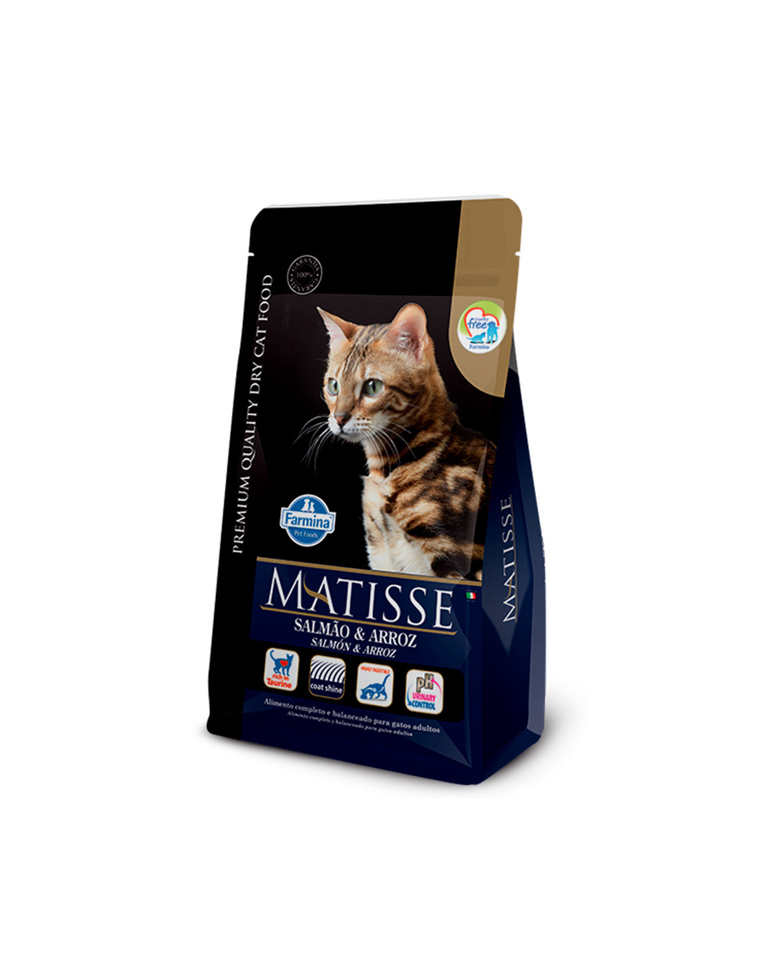 Matisse Salmon & Arroz contiene la cantidad ideal de taurina, importante aminoácido para el buén desempeño del miocardio y de la visión. La dieta es complementada por el aporte de todas las vitaminas y minerales necesarios para una alimentación completa y balanceada.