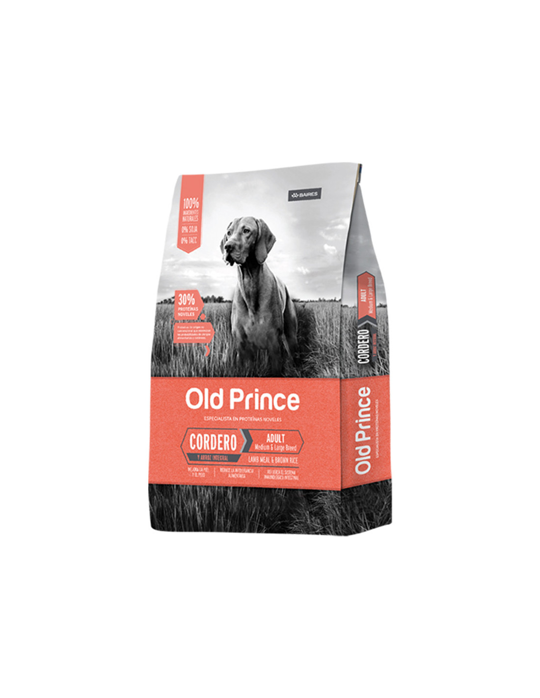 Harina de cordero, arroz integral, arveja, gluten de maíz, germen de maíz desgrasado, grasa animal (pollo), aceite de salmón (fuente de omega 3 y 6), hidrolizado proteico de menudencias vacunas, porcinas y aviares, pulpa de remolacha(fuente de fructo-oligosacáridos – FOS), levadura de cerveza, zeolita, sal, extracto de yucca schidigera, manano-oligosacáridos – MOS, nucleótidos de levadura, carbonato de calcio, dipropionato de amonio, ácido propiónico, acetato de zinc, pirofosfato ácido de sodio, glucosamina, condroitin sulfato, colágeno hidrolizado, ascorbato de manganeso, metionina, antioxidantes naturales: extracto de romero, vitamina C, betacaroteno, ácido cítrico, tocoferoles, licopeno, luteína, polifenoles, taurina,vitaminas: A, D3, E, K, B1, B2, B6, B12, ácido fólico, ácido nicotínico, ácido pantoténico, biotina, colina, minerales: zinc, hierro, cobre, yodo, selenio.