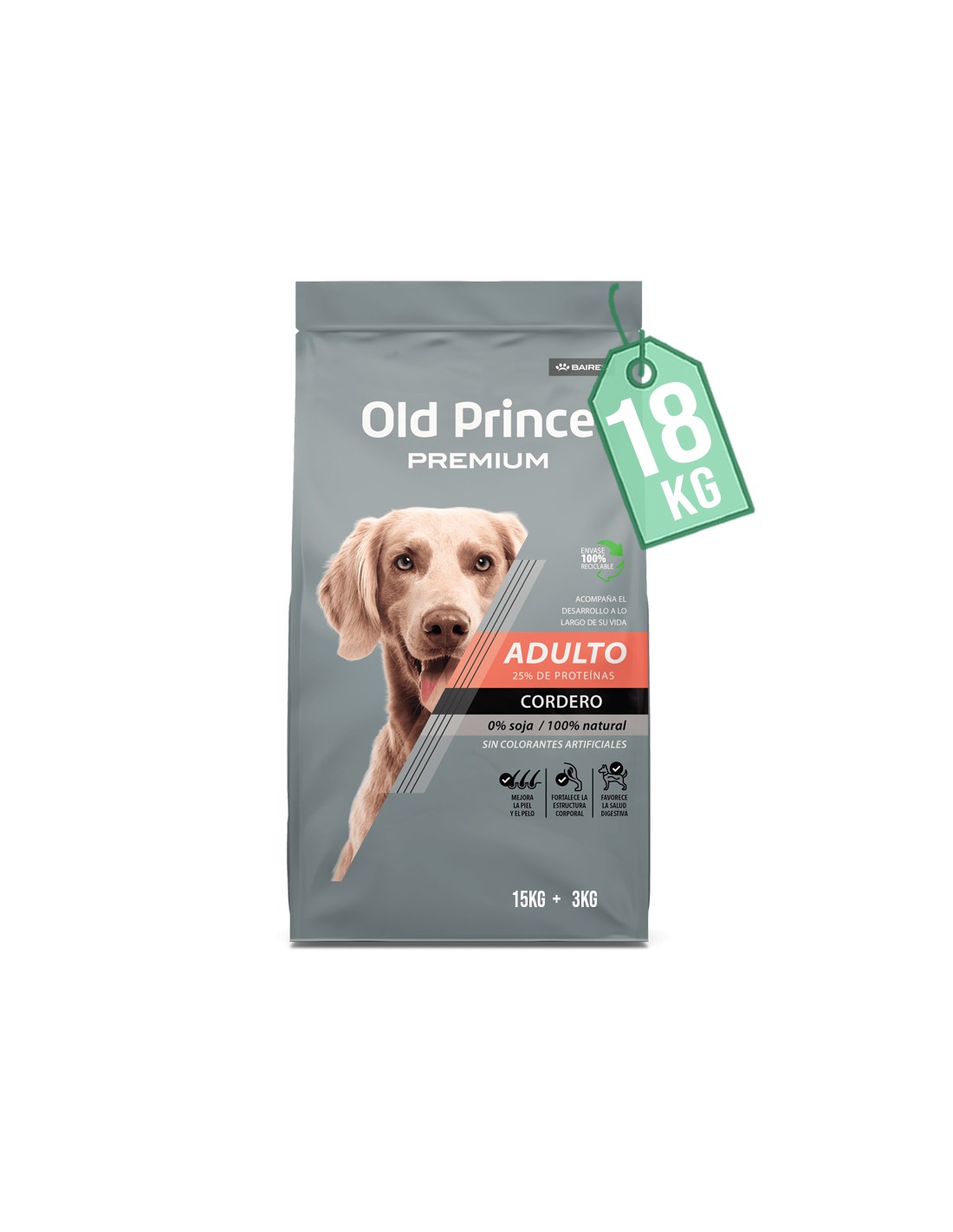 Harina de cordero, arroz, gluten de maiz, germen de maíz desgrasado, aceite de pollo, aceite de pescado (fuente de omega 3), hidrolizado proteico de menudencias porcinas, pulpa de remolacha (fuente de fructo-oligosacáridos – FOS), levadura de cerveza, zeolita, extracto de yucca schidigera, manano-oligosacáridos – MOS, propionato de calcio, ácido propiónico, acetato de zinc, pirofosfato ácido de sodio, glucosamina, condroitin sulfato, antioxidantes naturales: extracto de romero, acido cítrico, vitamina C, betacaroteno, luteina, vitaminas: A, D3, E, K, B1, B2, B6, B12, ácido fólico, ácido nicotinico, ácido pantoténico, biotina, colina, minerales: zinc, hierro, cobre, yodo, manganeso y selenio.