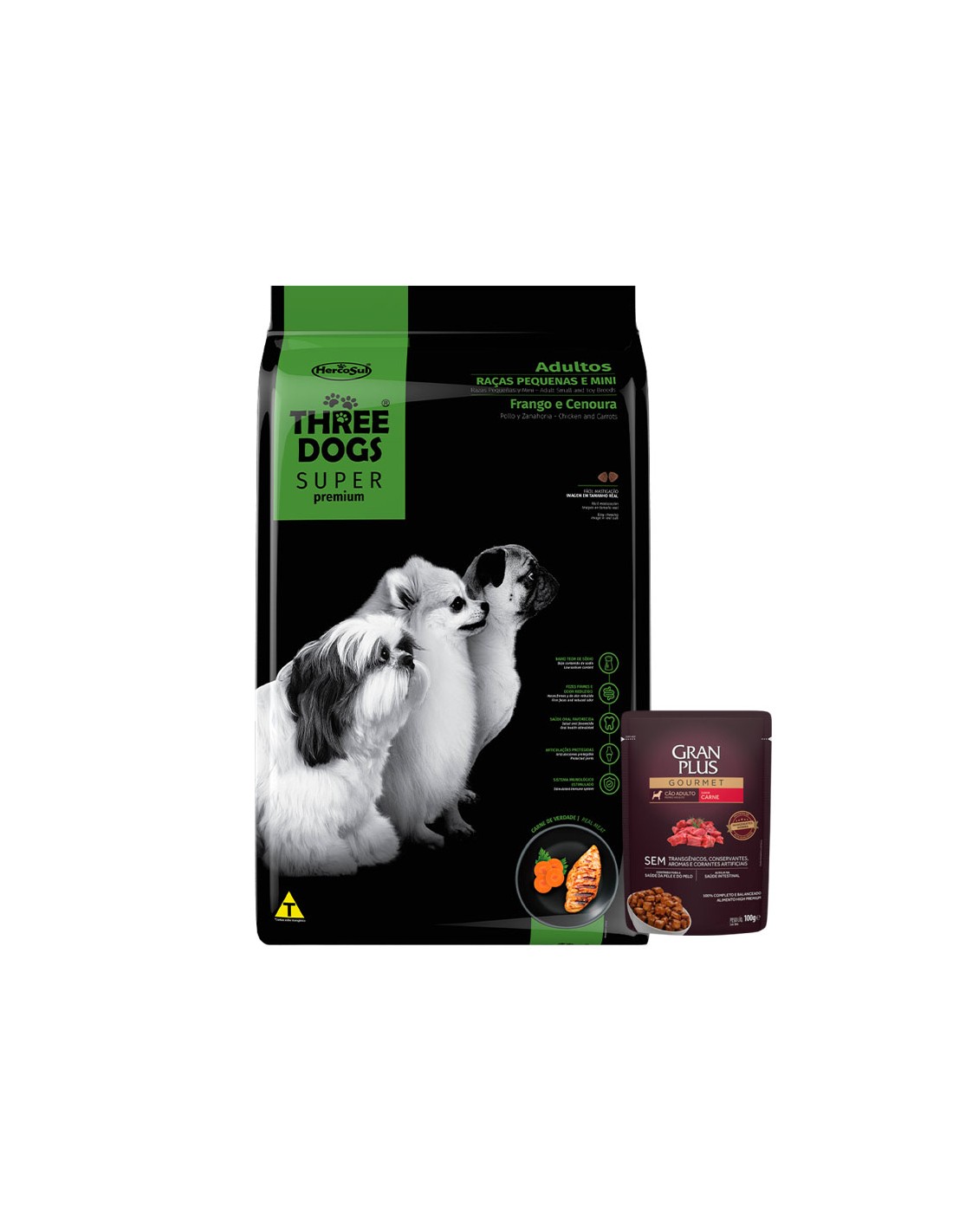Three Dogs Super Premium Adultos de Razas Pequeñas y Mini – Pollo y Zanahoria – Es un alimento rico en ingredientes de alta calidad que suministran todos los nutrientes necesarios para el mantenimiento de perros adultos. Especialmente desarrollado para perros de Razas Pequeñas y Mini, Three Dogs Super Premium es fácil de digerir, muy sabroso y su formato delicado facilita la masticación, de la forma que su mascota lo necesita para tener una excelente calidad de vida.