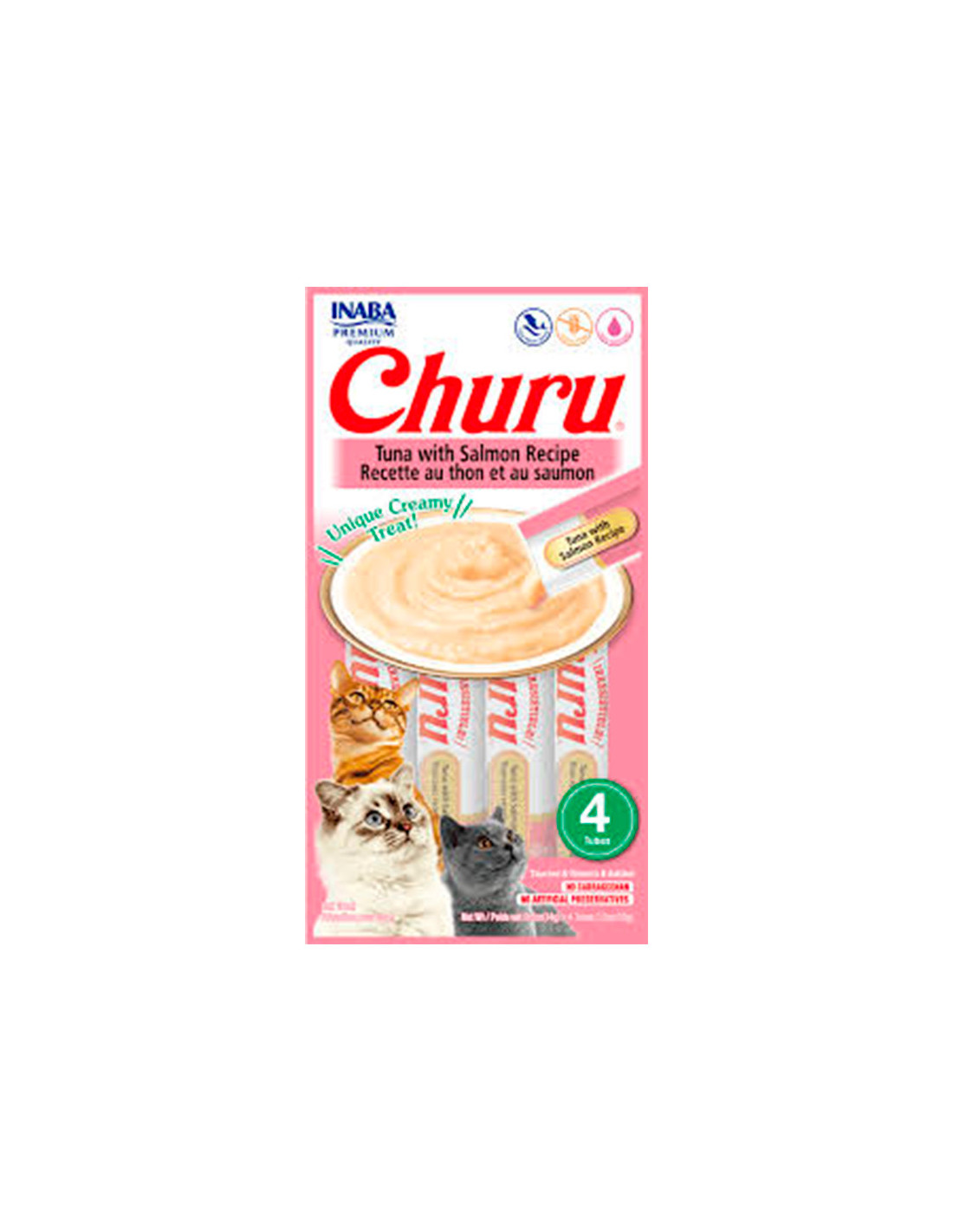 Ingredientes: Agua, Atún, SSlamón, almidón de Tapioca, sabores naturales, sabor natural de atún, goma guar, suplemento de vitamina E, Taurina, Extracto de te verde.