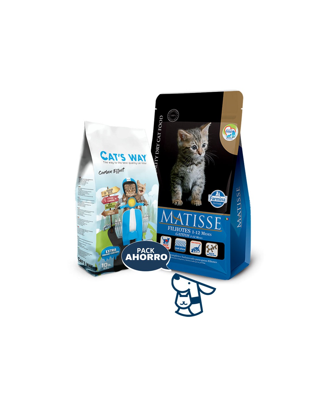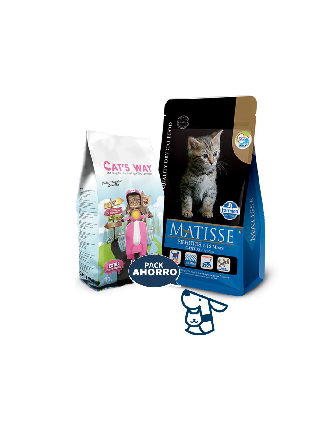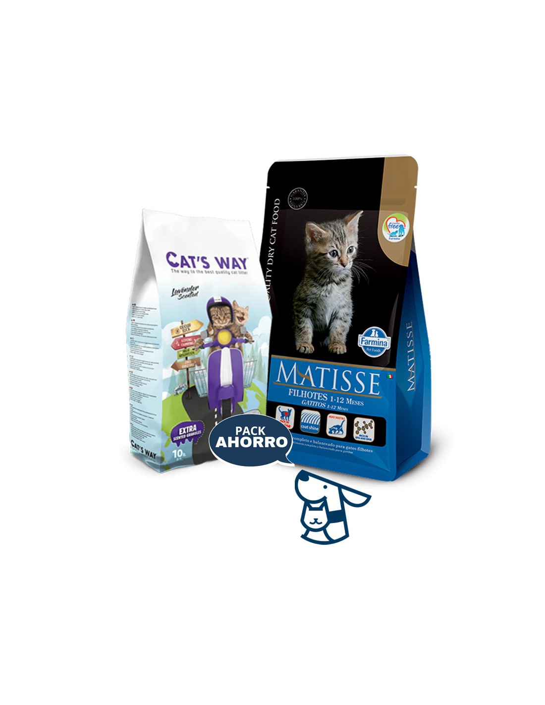 Combo Alimento Matisse Gato cachorro, Gatito, Kitten 7.5kg +8.5kg (10lts) Arena aglomerante Catsway. Aromas disponibles : Lavanda, Talco bb o sin aroma efecto carbón