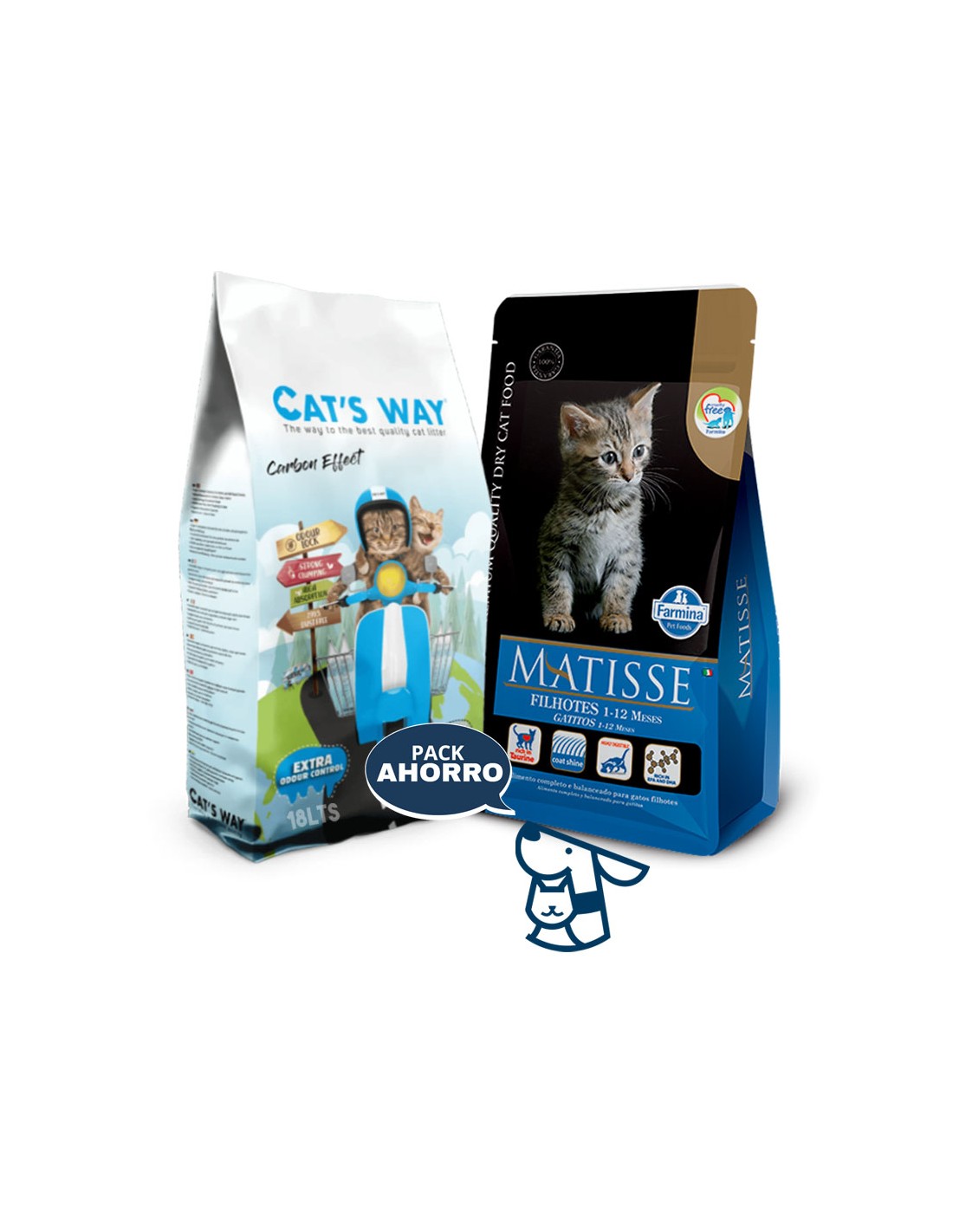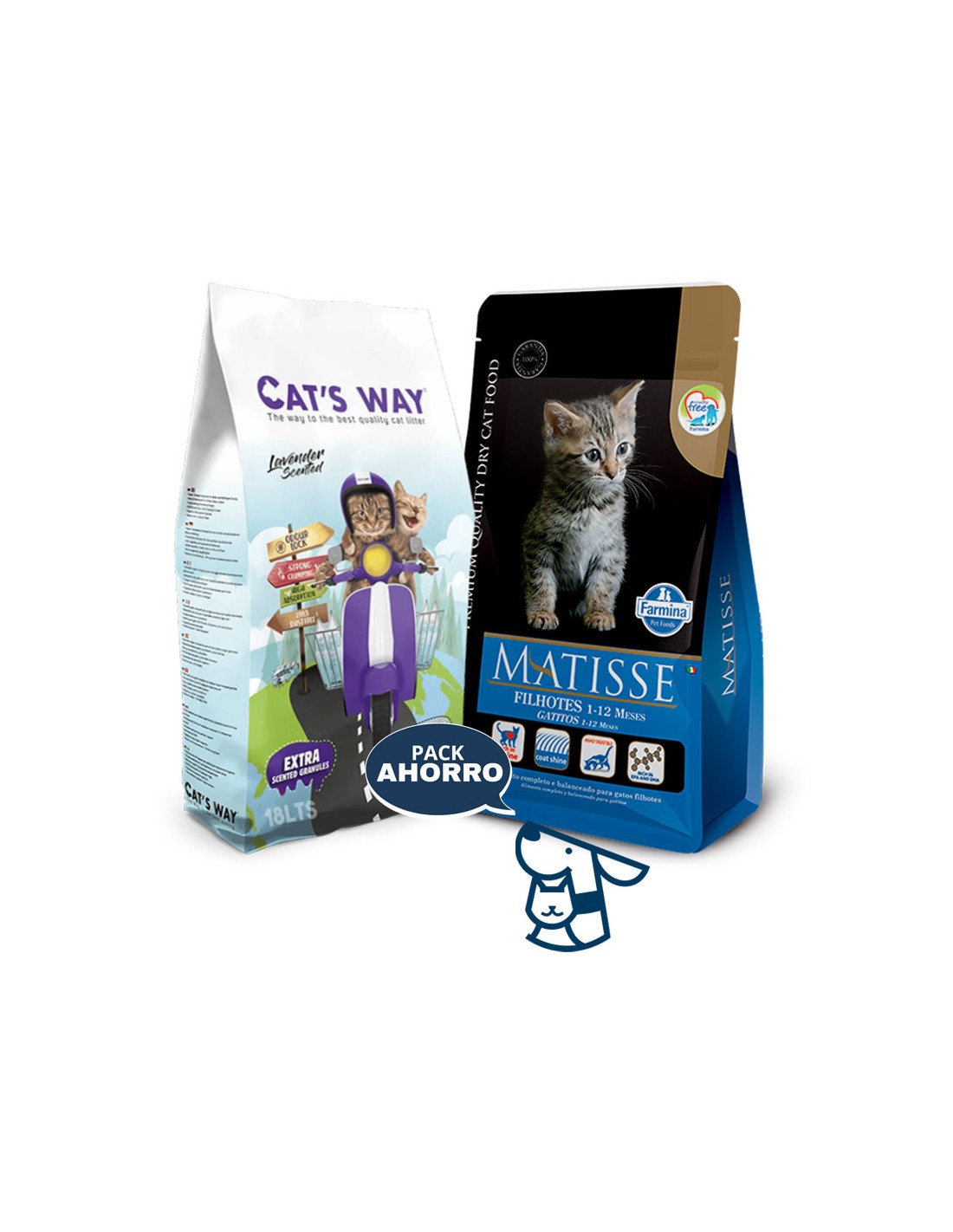 Combo Alimento Matisse Gato cachorro, gatito, Kitten 7.5kg + 15.3kg (18lts) Arena Aglomerante Catsway . Aromas disponible: Lavanda o sin aroma efecto carbón