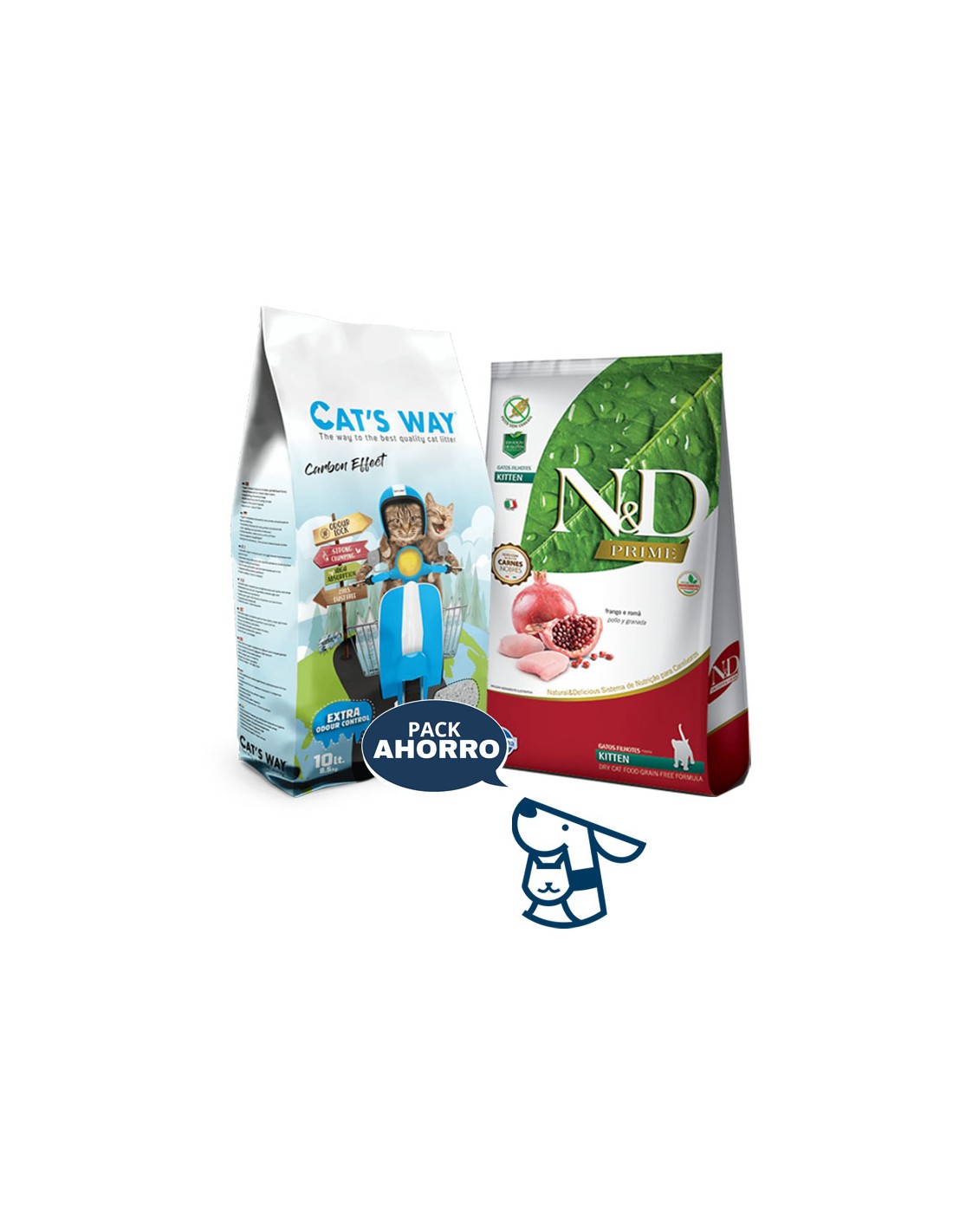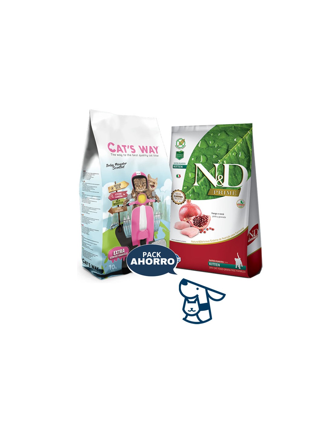 Combo ALIMENTO NYDPRIME PARA GATO CACHORRO, GATITO, KITTEN 1.5KG + 8.5KG (10LTS) ARENA AGLOMERANTE CATSWAY AROMA LAVANDA, TALCO BB O SIN AROMA EFECTO CARBON