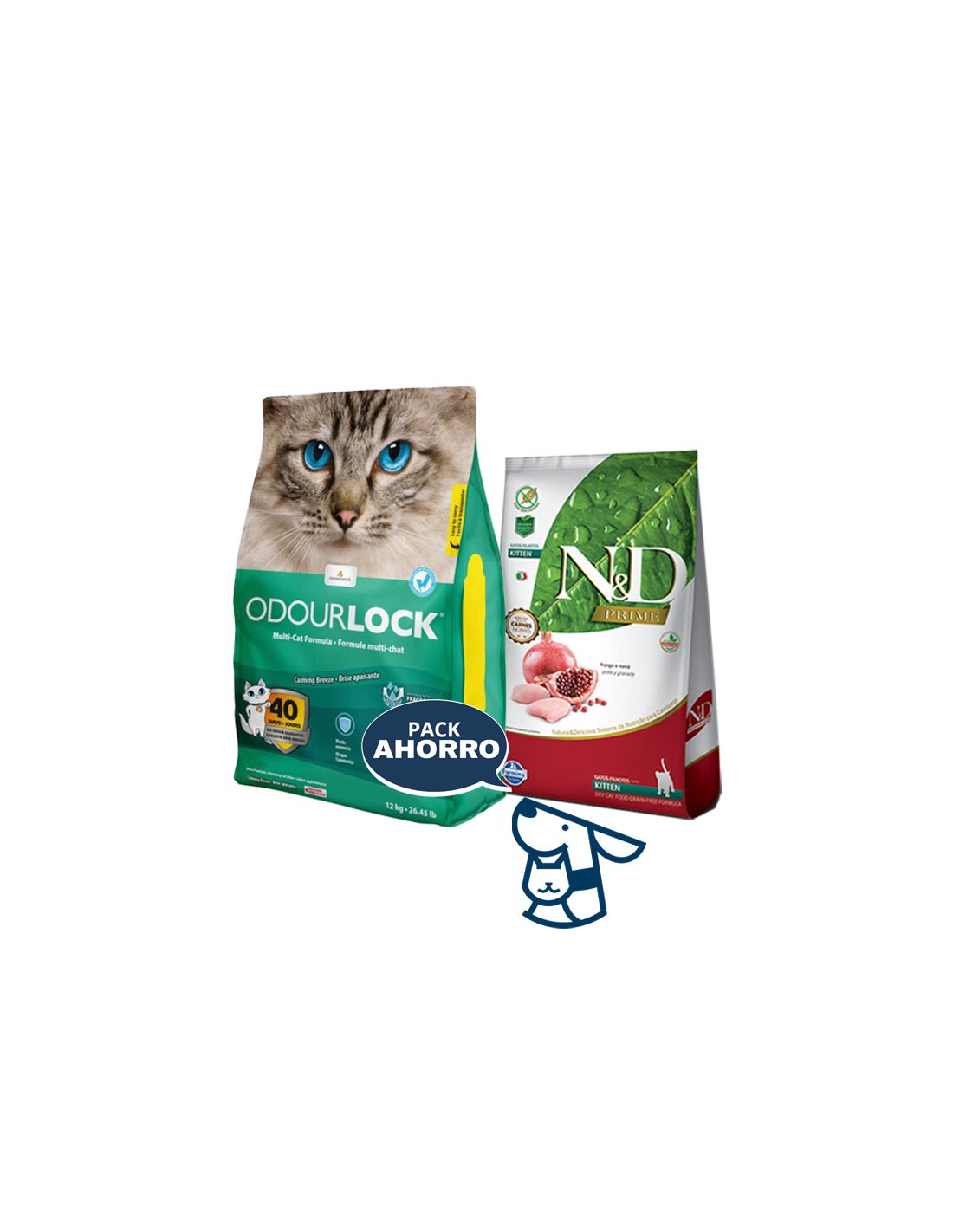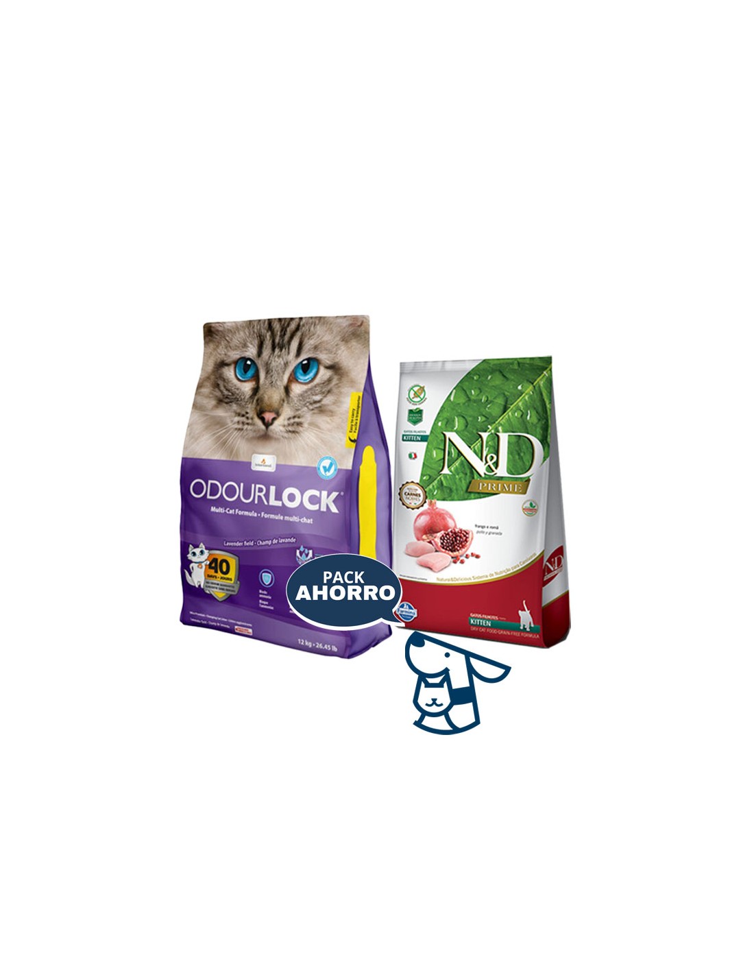 COMBO ALIMENTO NYD PRIME PARA GATO CACHORRO, GATITO, KITTEN 1.5KG + 12KG ARENA AGLOMERANTE ODOURLOCK