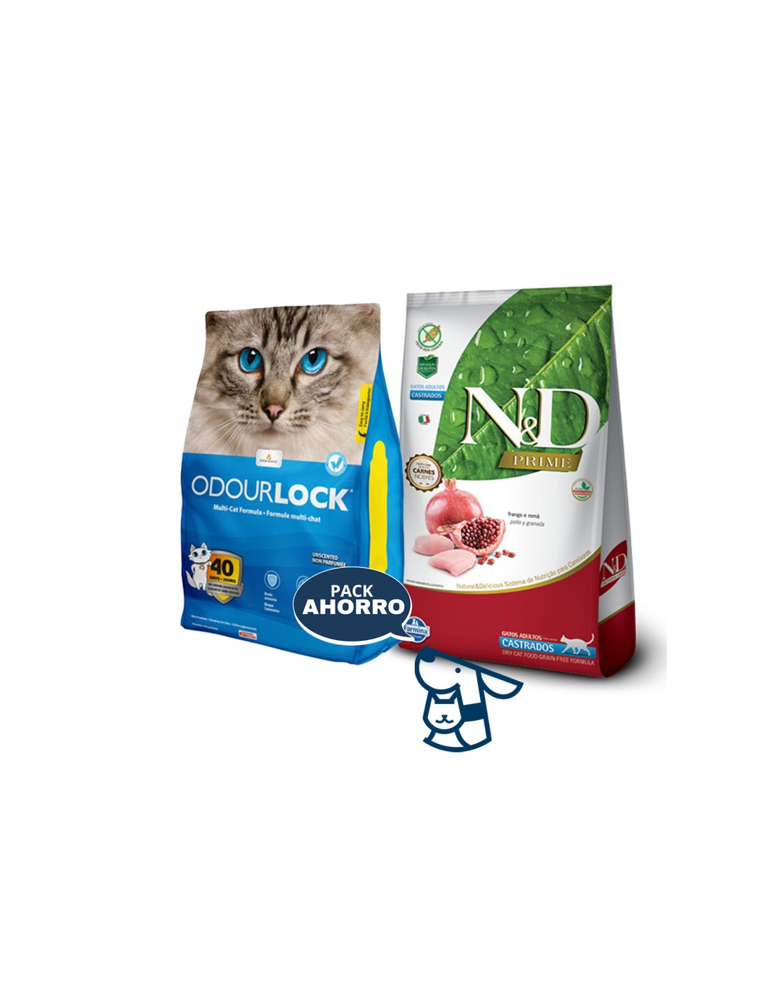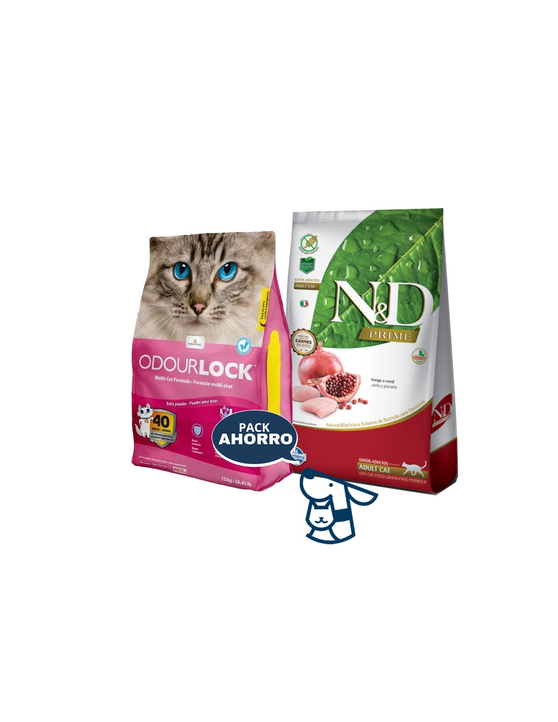 Combo ALIMENTO NYD PRIME PARA GATO ADULTO 7.5KG + 12 KG ARENA AGLOMERANTE ODOURLOCK