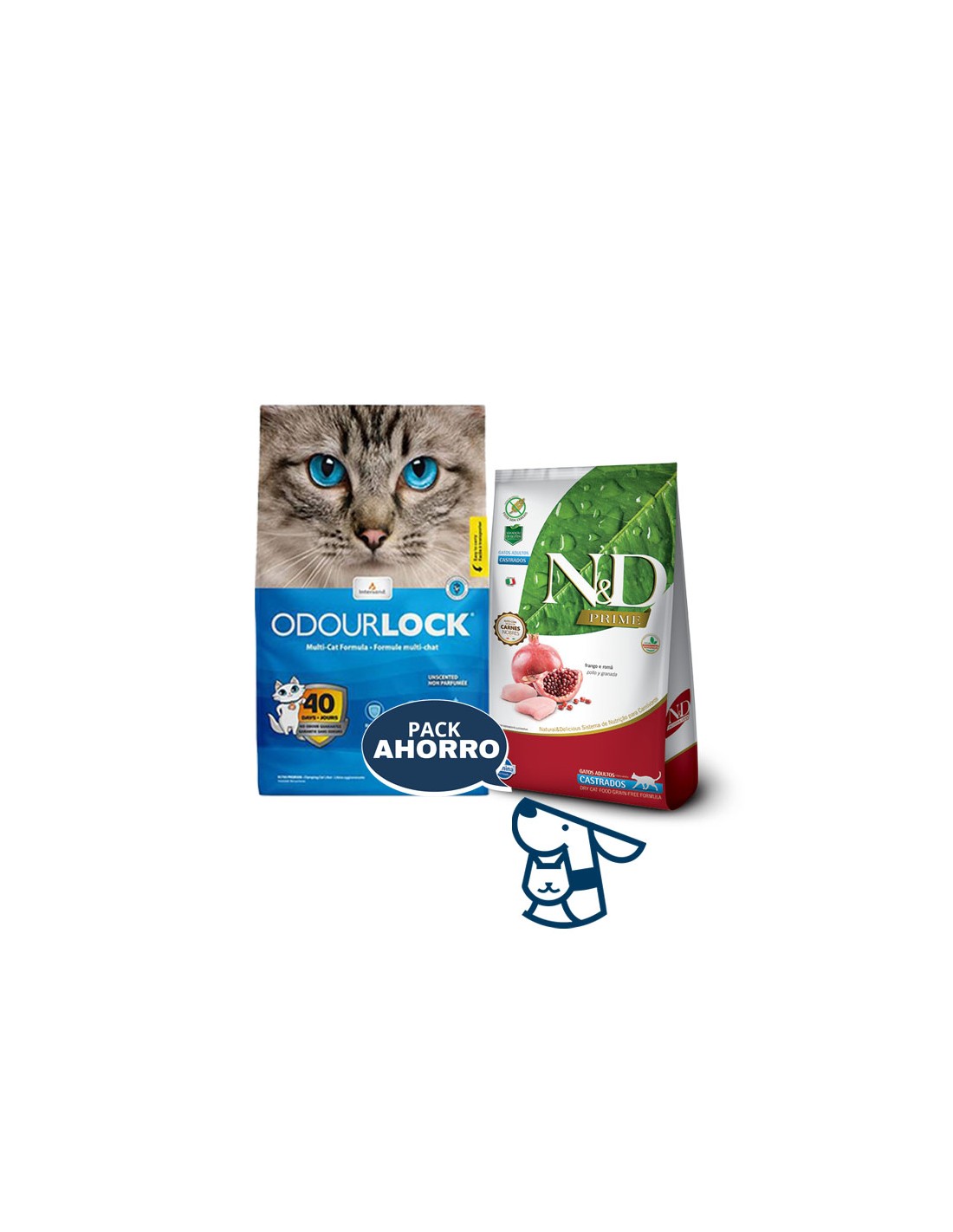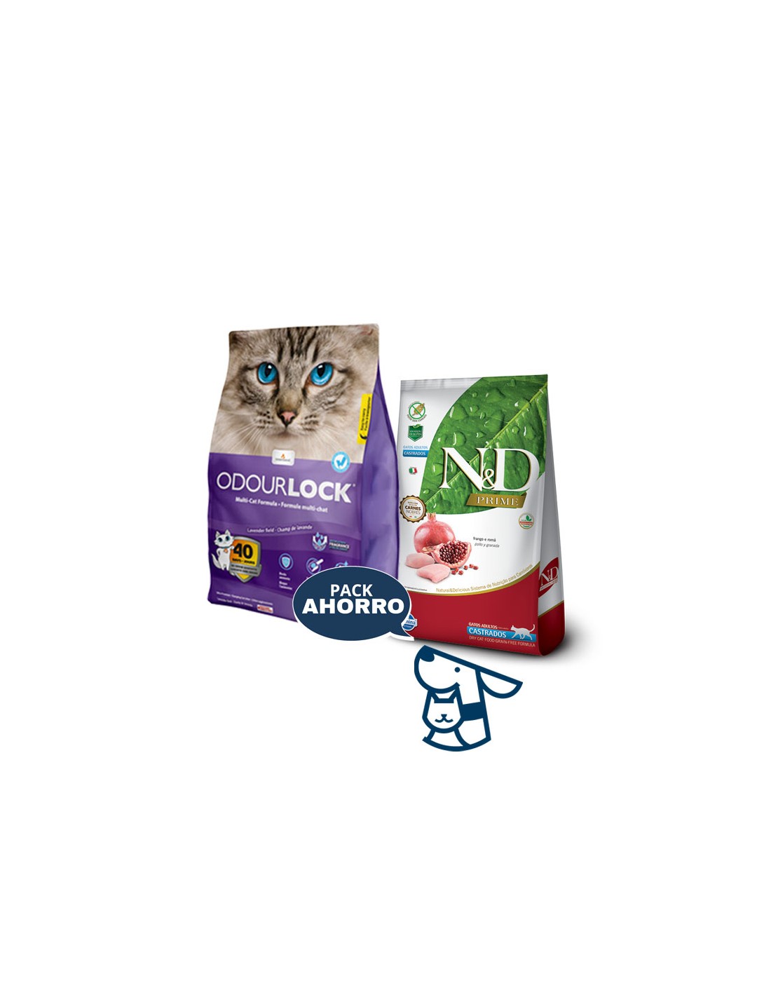 Combo ALIMENTO NYD PRIME PARA GATO CASTRADO 1.5KG + 6 KG ARENA AGLOMERANTE ODOURLOCK ,AROMA LAVANDA O SIN AROMA