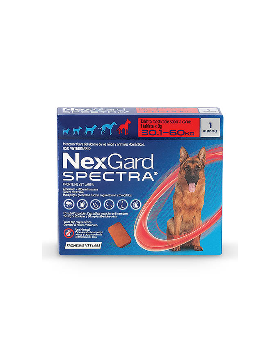 NexGard Spectra® es un delicioso bocado masticable con sabor a carne que protege a tu perro contra pulgas, garrapatas y gusanos intestinales.